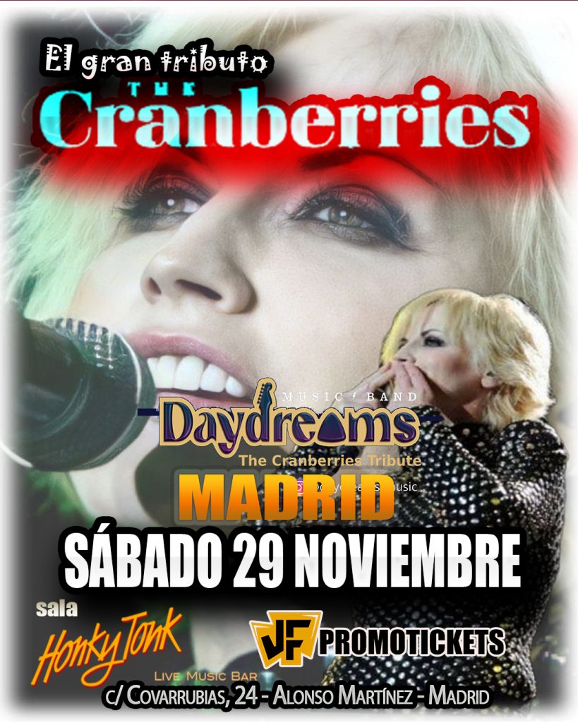 «Day Dreams» no solo celebra la inconfundible voz de Dolores O’Riordan, sino que también recrea la esencia única que definió la música de The Cranberries. La Honky Tonk de Madrid, con su ambiente íntimo y vibrante, será el escenario perfecto para transportarte a través del tiempo y revivir los recuerdos atemporales de esta banda legendaria.