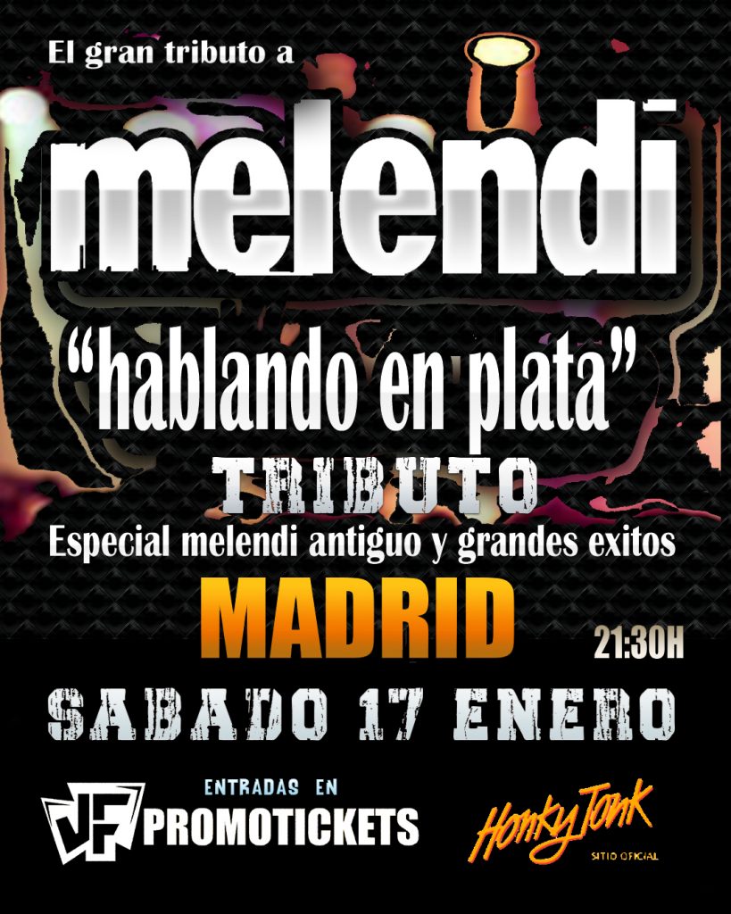 Llega a Madrid el gran tributo a MELENDI – HABLANDO EN PLATA – es un tributo enfocado al Melendi antiguo sin olvidar los grandes éxitos que no pueden faltar. Si te gustaba el Melendi de antes no te puedes perder este gran evento nunca realizado hasta la fecha en Madrid!